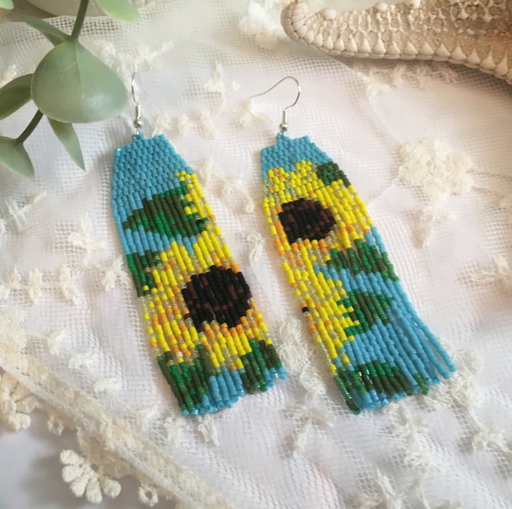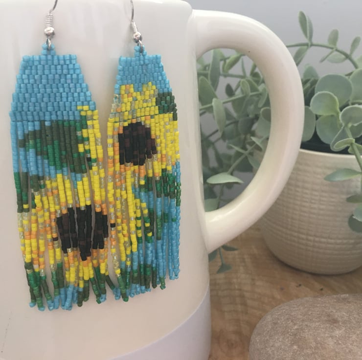 Lovingly hand woven using tiny Miyuki seed beads these pretty one of a kind earrings make a real statement piece and would look lovely teamed up with a Summer Dress or an evening outfit.
