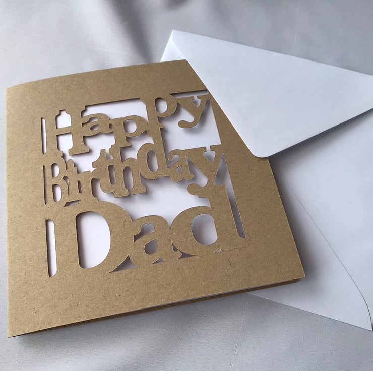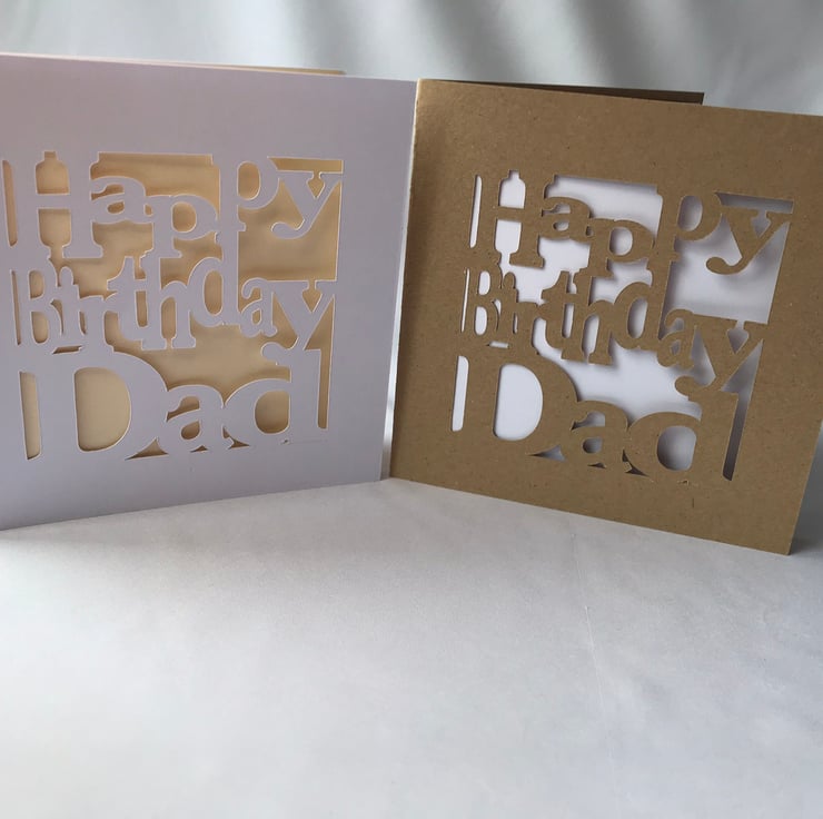 The Happy Birthday Dad cards are made in white or brown kraft card and comes with an envelope in white or brown kraft colour and in a cello bag.