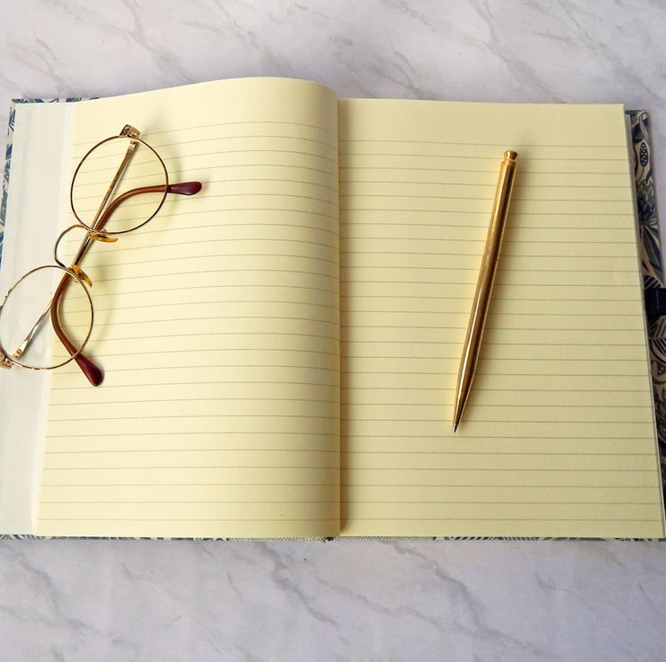 The book contains 80 pages (160 sides) of good quality100gsm cream text paper, printed with lines in grey. The paper is suitable for all dry media, making it an ideal notebook, journal, recipe book or other writing book, perhaps a sketchbook also.