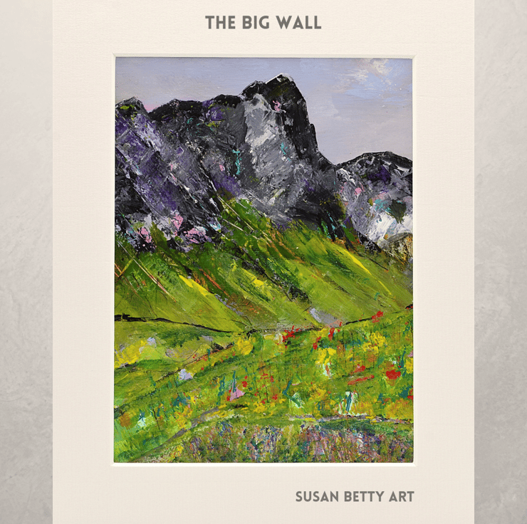 This painting is called "The Big Wall". This is a name often given to favourite mountain spots by climbers. It would make an ideal gift for any art lover or anyone who is interested in outdoor sports.