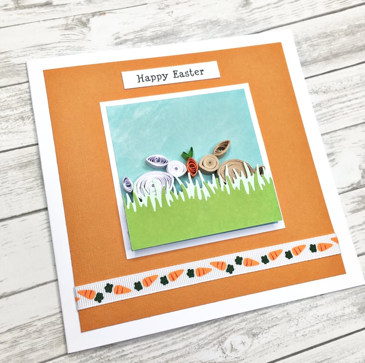 This lovely quilled Easter bunny card is perfect for celebrating this spring season.