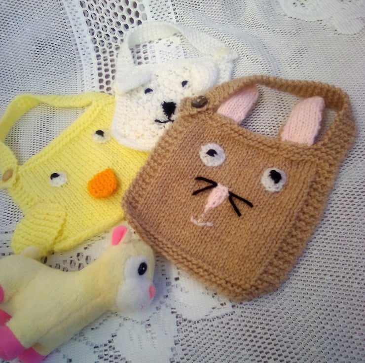 These cute little bib are in stock in the white, golden brown and yellow colours shown., They have the faces of cute little chick, lamb and bunny. They are fastened at the front with a little button. They are made in a size to fit a baby up to the age of 6 months approx. The bibs can be made for you in a colour of your choice, just let me know the colour you would like. The processing time for your order will be 1 - 2 weeks to produce and post to you.