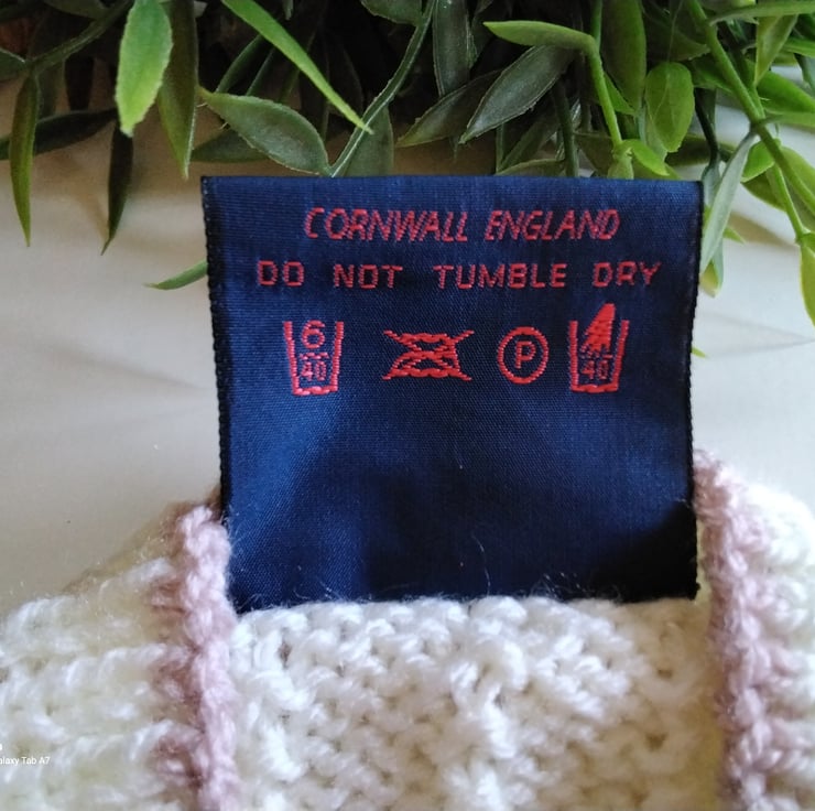 Baby knitwear is designed and hand crafted by Demelza Designs in Cornwall meeting UK baby safety standards, Only branded premuim acylic, acrylic/natural fibre blends or pure natural fibre yarns are used in baby knitwear which conforms to BS984/76 standards.