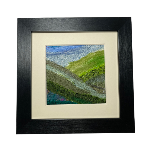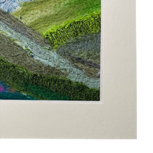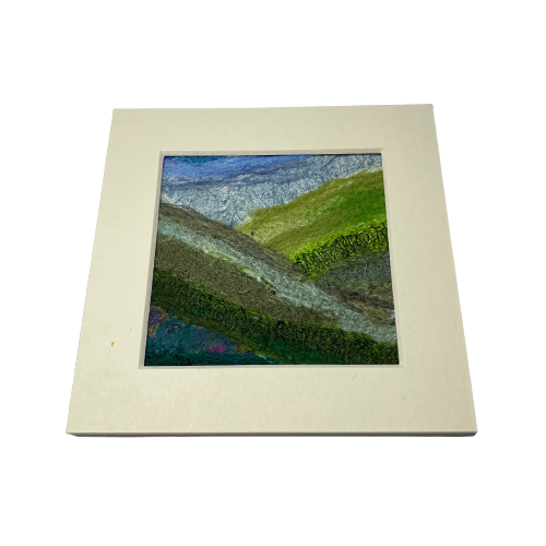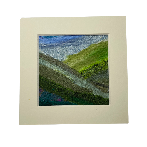Seconds sunday - Textile Art abstract landscape, rolling hills, mounted