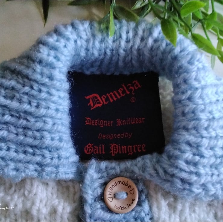 Baby knitwear is designed and hand crafted by Demelza Designs in Cornwall meeting UK baby safety standards, Only branded premuim acylic, acrylic/natural fibre blends or pure natural fibre yarns are used in baby knitwear which conforms to BS984/76 standards.