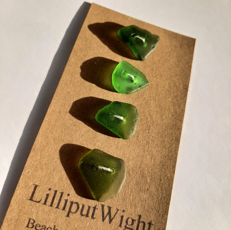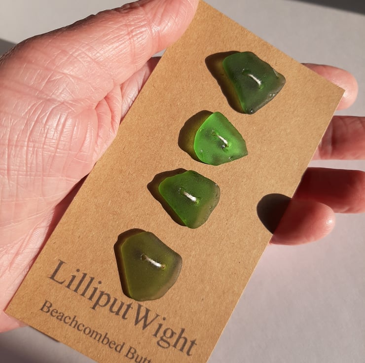 These buttons have been handmade from genuine sea glass that has been collected on the beaches of the Isle of Wight.