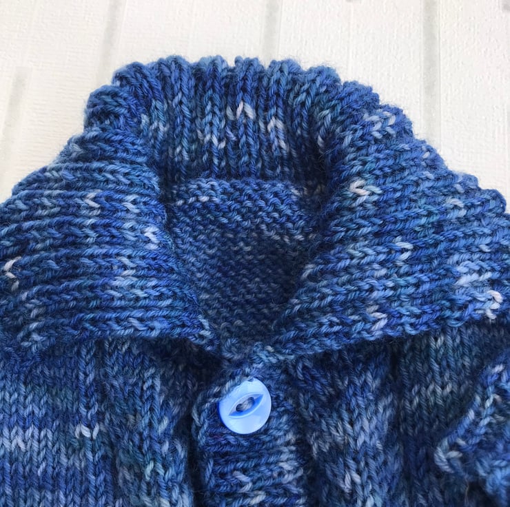 I used an older pattern for this cardigan and knit the 3-6 month old size. The measurements are 50cm chest, 27cm long, 16cm sleeve.