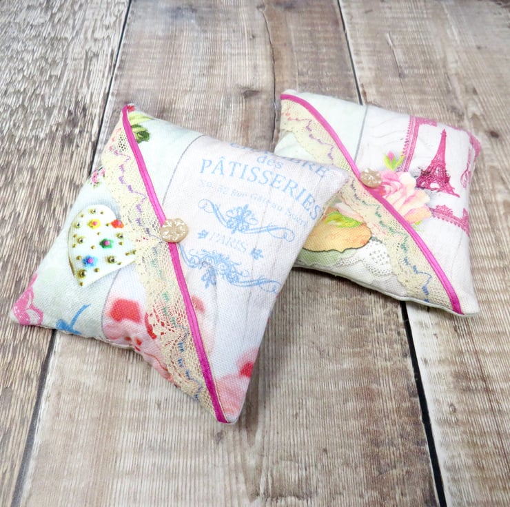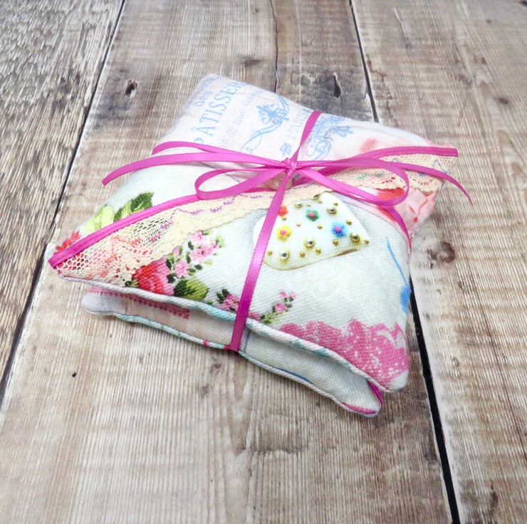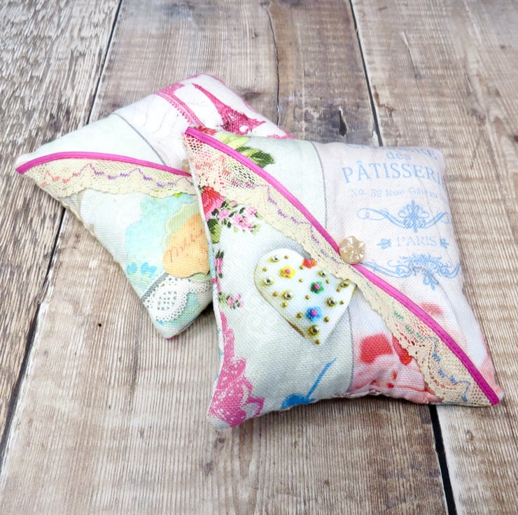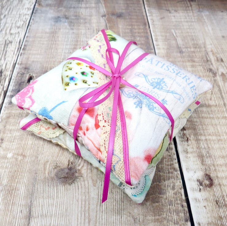 Lavender fragranced sachets made in a french inspired cotton print, this lovely gift set is trimmed with lace, ribbon and pearly buttons. These pretty sachets are filled with wadding and a muslin bag filled with dried lavender from Provence. Placed in a drawer, they will keep your clothes wonderfully fragranced. In the event of the scent fading, just gently crush the lavender to release more of it's delicious fragrance.