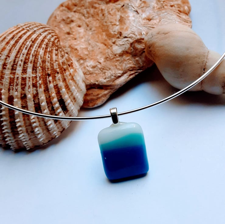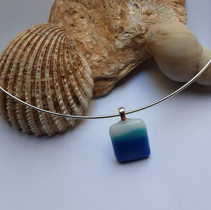 Coastal colours fully fused first into a puddle which is then cut into smaller pieces and fused again.