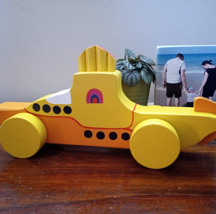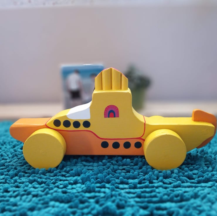 yellow submarine. wooden handmade iconic toy. Beatles memorabilia inspired.