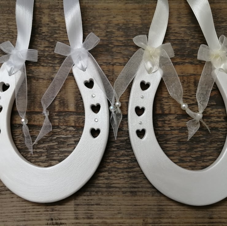 Available in ivory with pearl detail or white with diamantes, supplied with a matching organza gift bag.