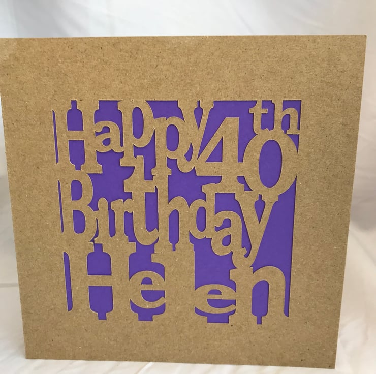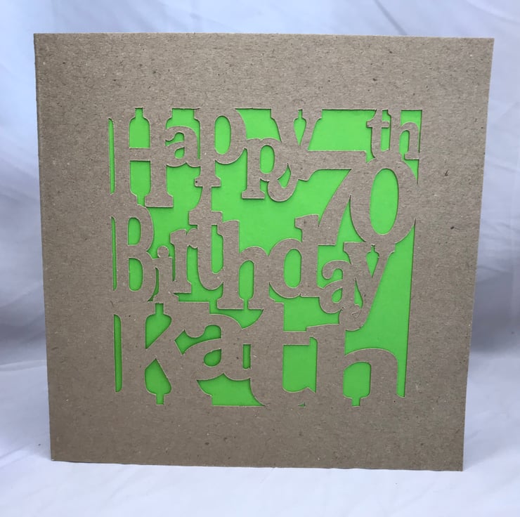 The cards are personalise with Happy Birthday, AGE if you want and there NAME, cut out on the front of the card with a block colour card covering over the words, with a blank inside to write your loving message.