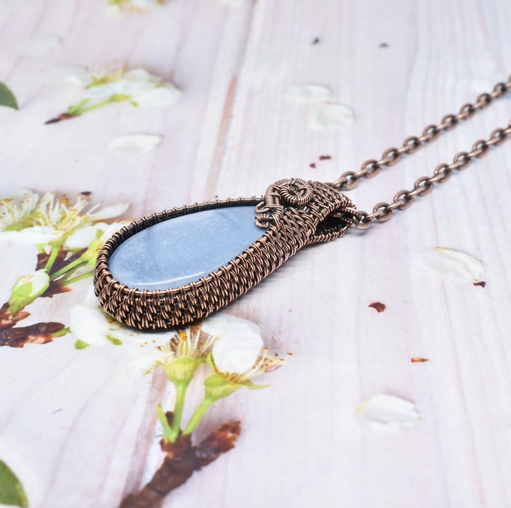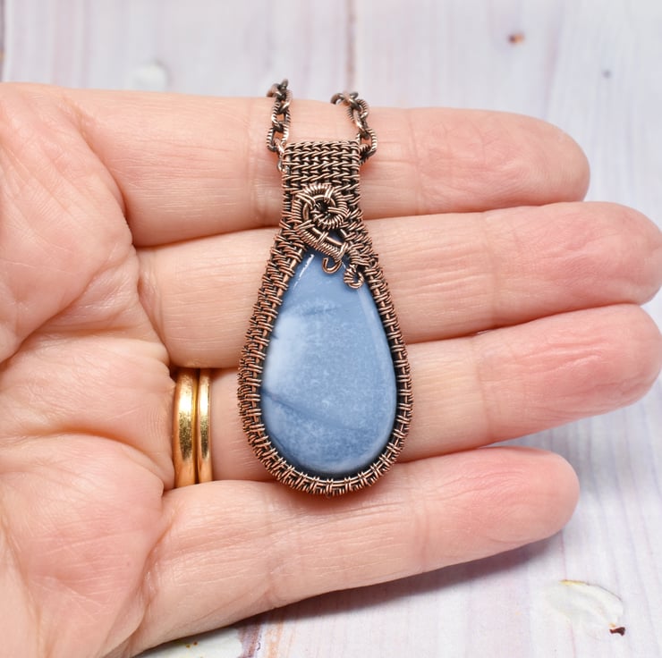 A beautiful owyhee blue opal teardrop I have hand woven around using solid copper wire to make this striking necklace.