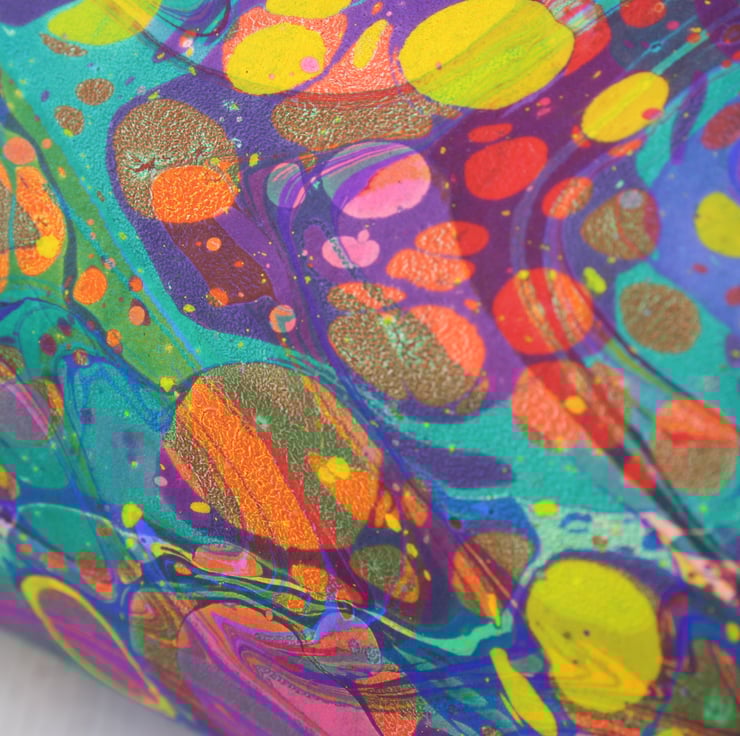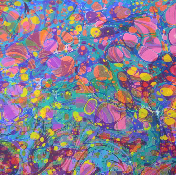 Hi I'm Jess, and I make colourful marbled paper which can be used in al sorts of craft projects from bookbinding to collage, box making, card making etc.