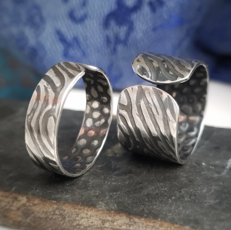 These beautiful holistic Balance Me stacking rings have been handmade in textured oxidised recycled sterling silver. Here you have an option to purchase either the wide or the medium band. If you would like both rings then please go to the separate listing for 'Ring Stack'.