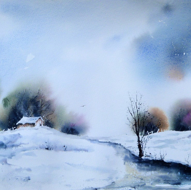 Working from my home studio on the beautiful Isle of Mull off the west coast of Scotland, my paintings are inspired by the wonderful Seascapes, Landscapes and Wildlife that surround me. This particular painting is a semi-abstract, wintry Landscape. A walk in my imagination.