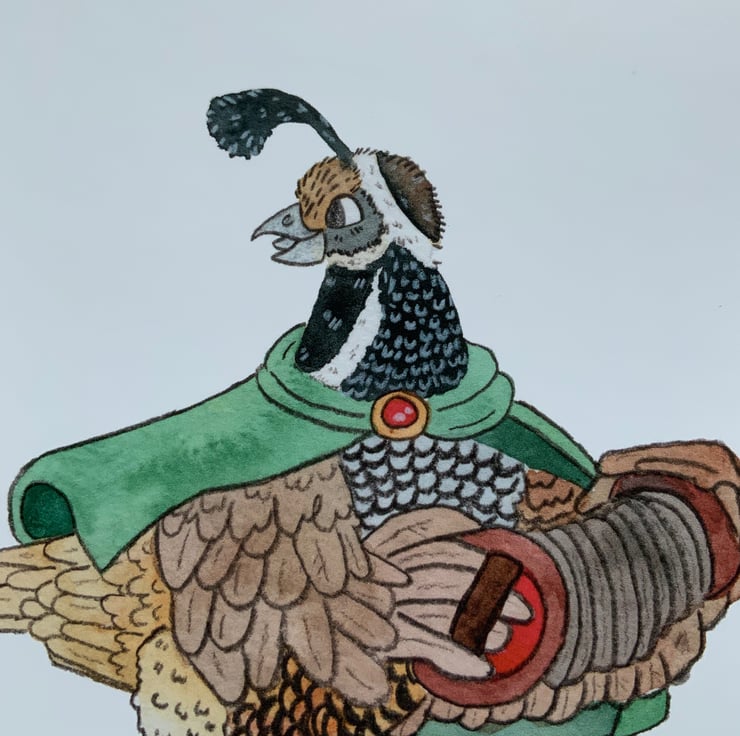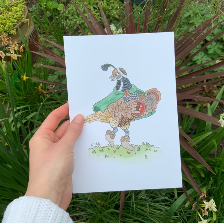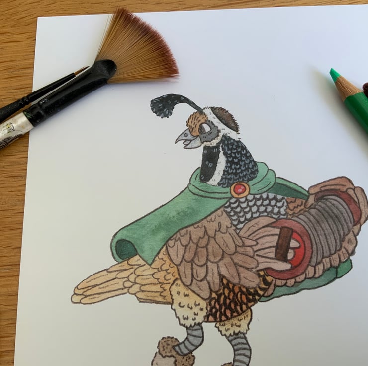 This print was created after a word association session, the word combination bird bard sounded super cheerful . One of the things I love to do is make things that add a bit of joy into the world, so this seemed perfect. The only thing left was to created it in my favorite mediums watercolor and colour pencils.
