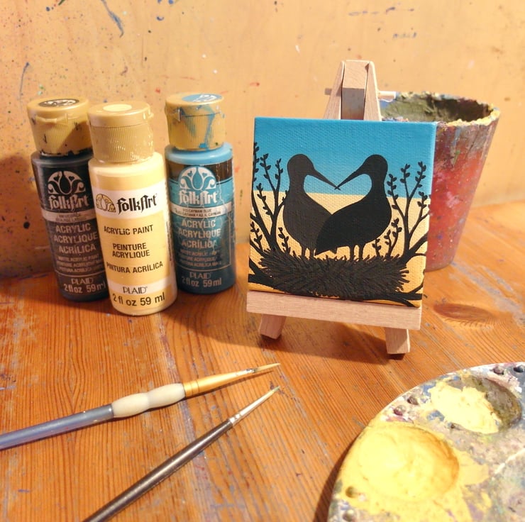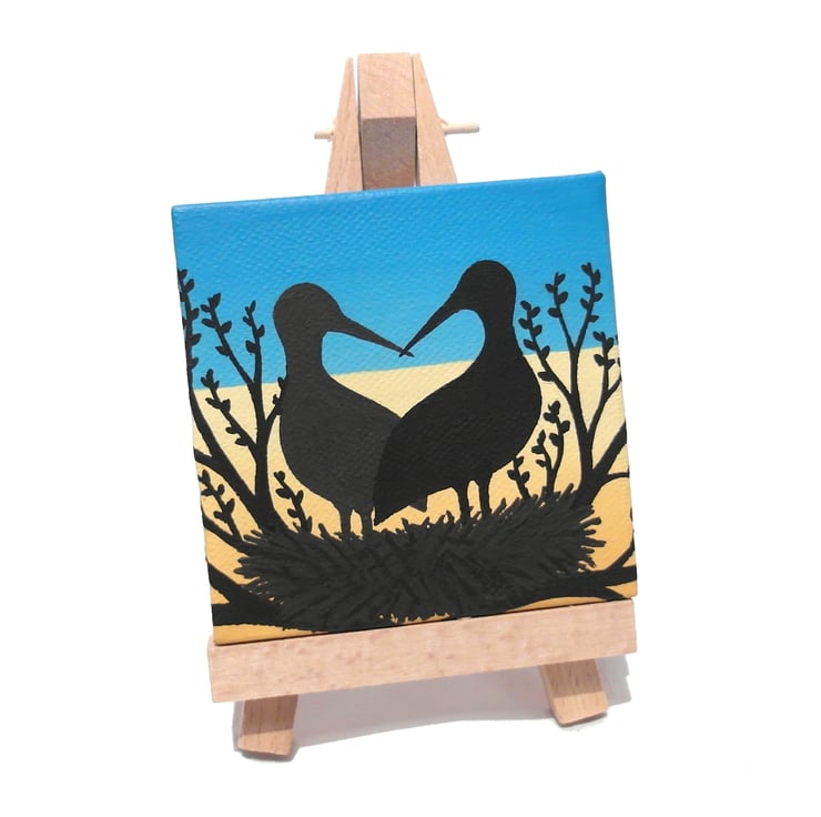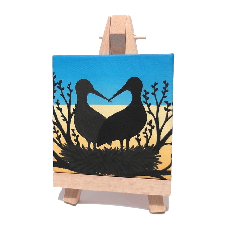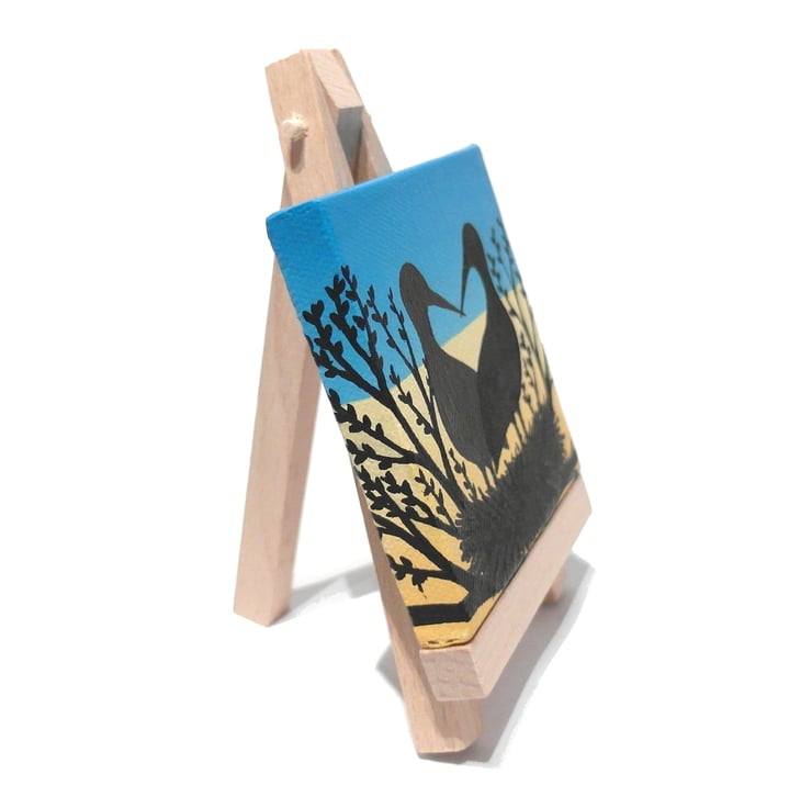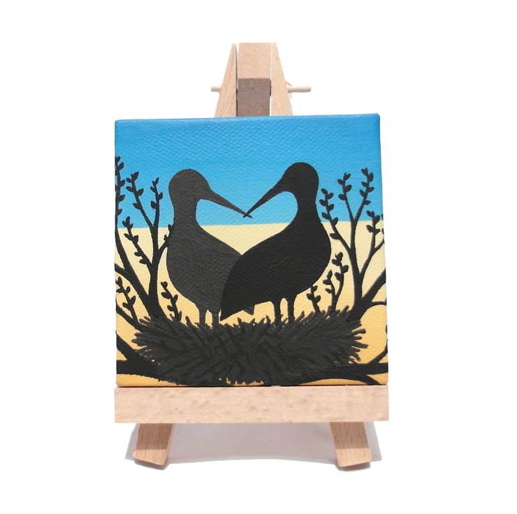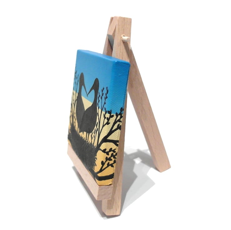 This original stork art is painted in acrylics on a 7.5cm (3") square canvas and is signed and dated on the back.
