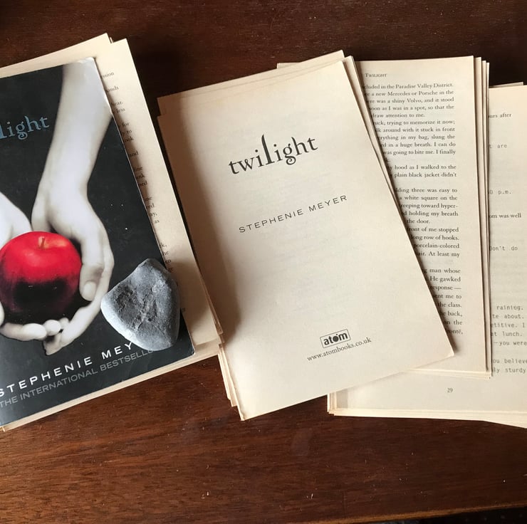 A great way to not only craft but also to upcycle. You will receive 20 pages from the Twilight Saga books, therefore a mixture from all four books i.e. Twilight, New Moon, Eclipse and Breaking Dawn.