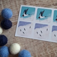 A 50mm wooden charm illustrated with an original design of a great tit by Daffodowndilly. Accompanied by a themed colour 3 felt ball charm and complete with a large lobster swivel clasp and split ring to attach to your bag or keys.