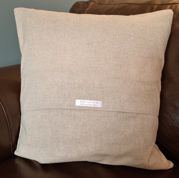 The cushion has a soft envelope back in a matching plain linen coloured fabric.