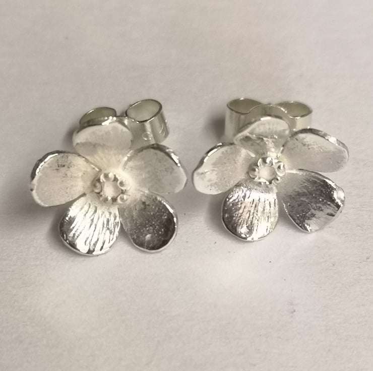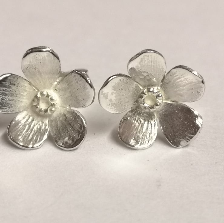 Silver hand made Forget-me -not earstuds, beautiful realistic studs. 12mm diameter