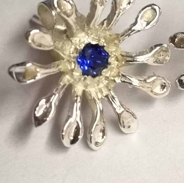 Silver earstuds set with a synthetic 3 mm Sapphire, Hallmarked