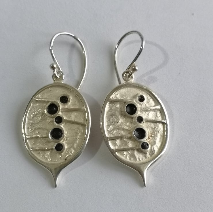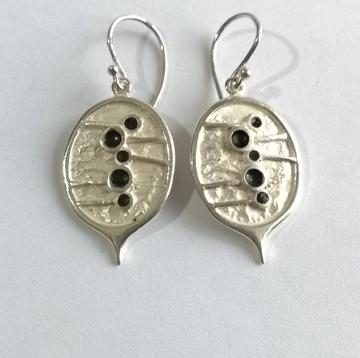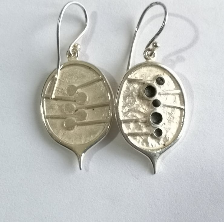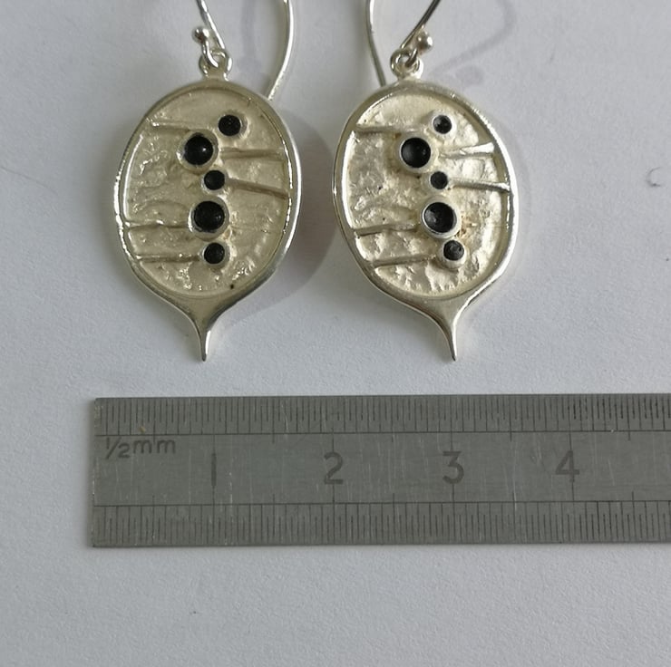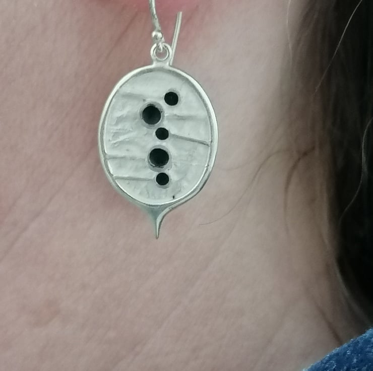 Honesty drops hand made from Silver with black oxidized seeds