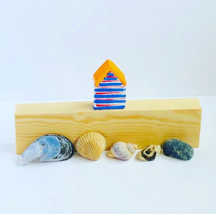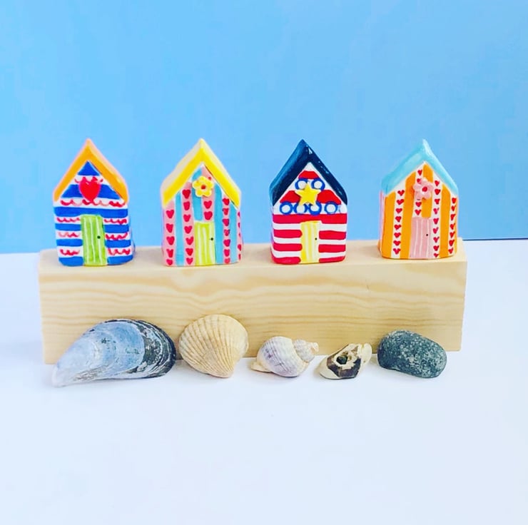 This cute little “Beach Hut” has been lovingly handmade from porcelain clay. Each house has its own theme and added 3D extra ie flower/star. They are hand decorated with colourful underglazes and then fired in the kiln twice - the second firing adds the glossy transparent glaze. They look very jolly on a shelf or windowsill and make great gifts! Measurements: 5cm high by 3 cm wide.