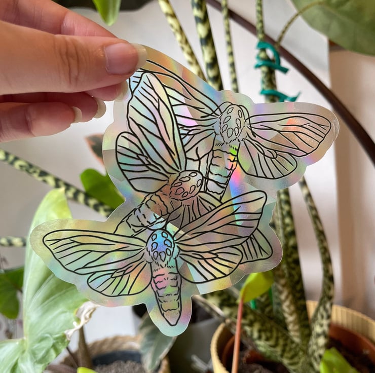 Printed on a prismatic, holographic window film with my exclusive illustration of moths.