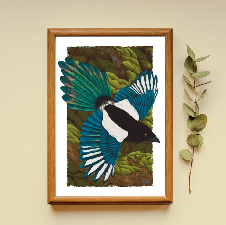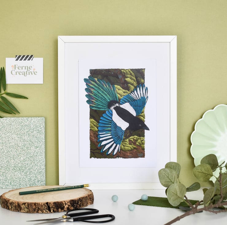 Brighten up your home with this Magpie art print, the perfect addition to any bird lover's interior. This corvid print is ideal for any modern living style of any nature home interior.