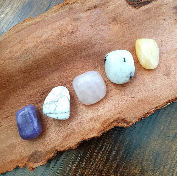 A set of 5 tumblestones chosen for their peaceful and calming energies. Presented in a velvet pouch with information card.