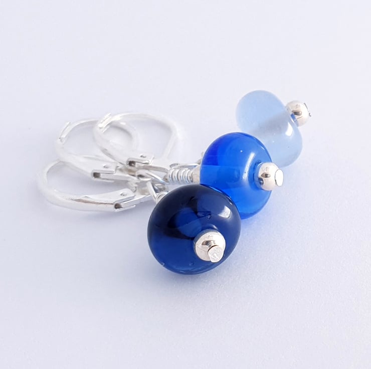 A set of 3 stitch markers made with lampwork glass beads in a gorgeous transparent blue gradient.