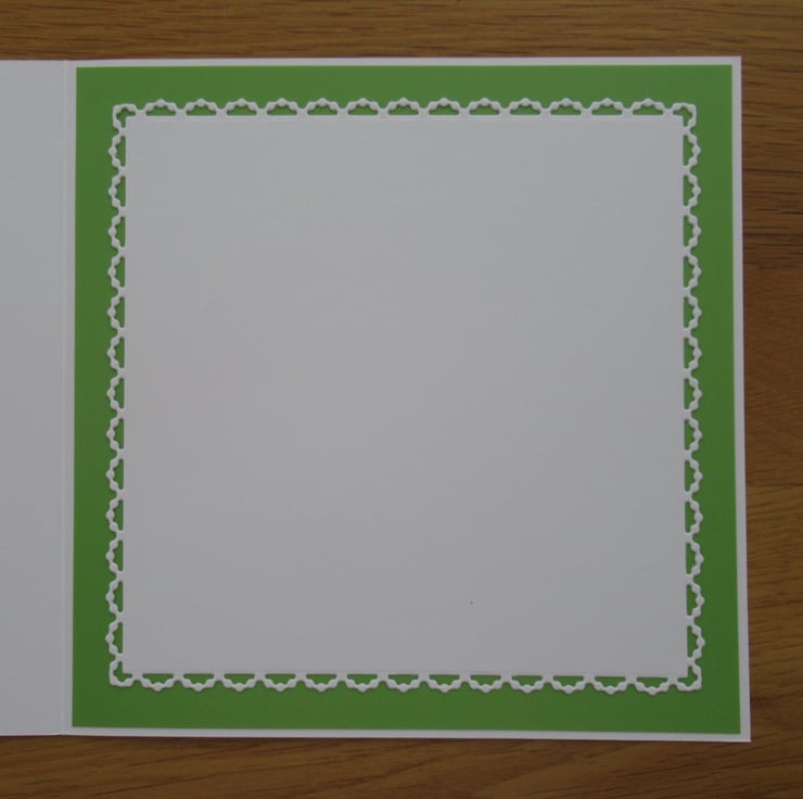 A 17cm square white card with quality envelope