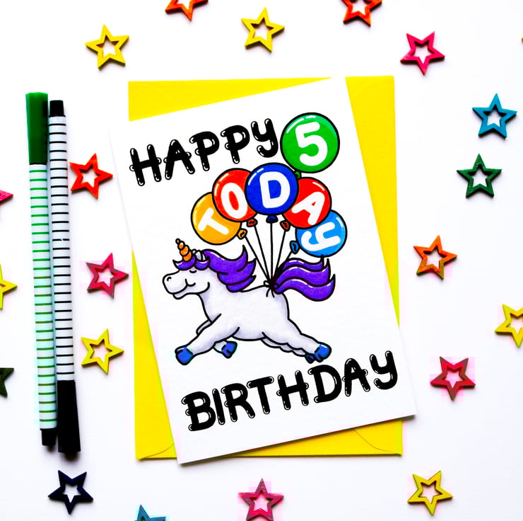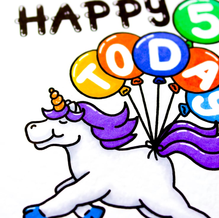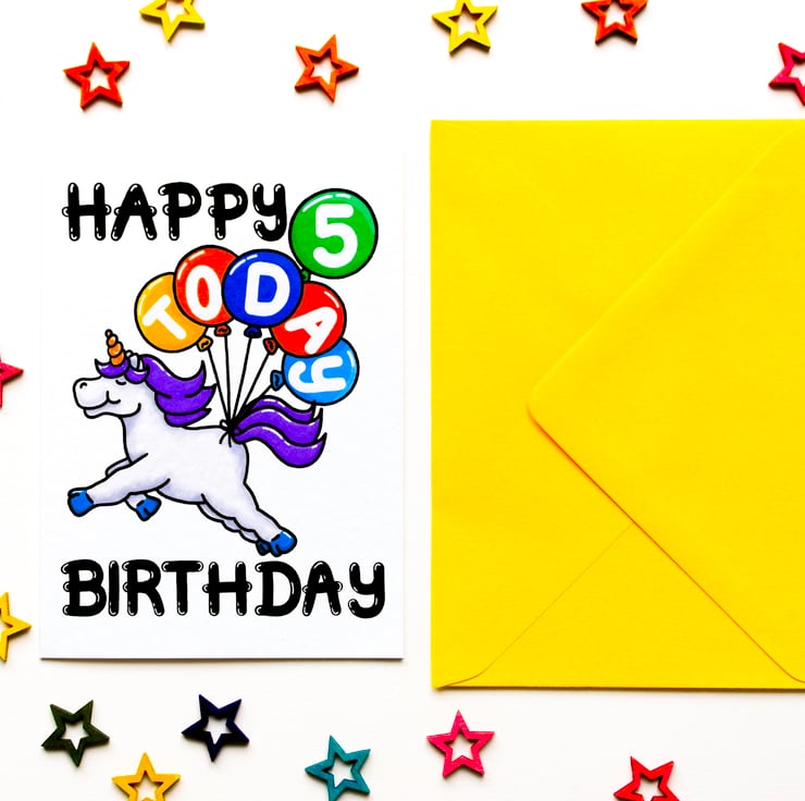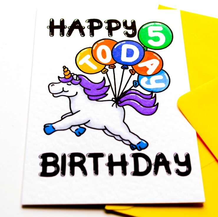 Greeting on front: HAPPY BIRTHDAY 5 TODAY (On Balloons)