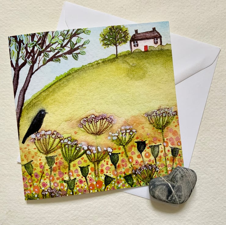This is a card printed from one of my original paintings. it measures 14.5x14.5cm and is blank inside making it suitable for a number of occasions. It comes with an envelope.
