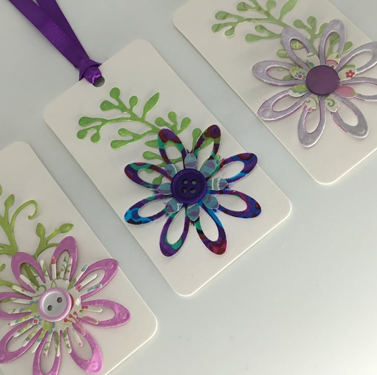 A set of 3 gift tags with a die cut flower design, suitable for lots of occasions.