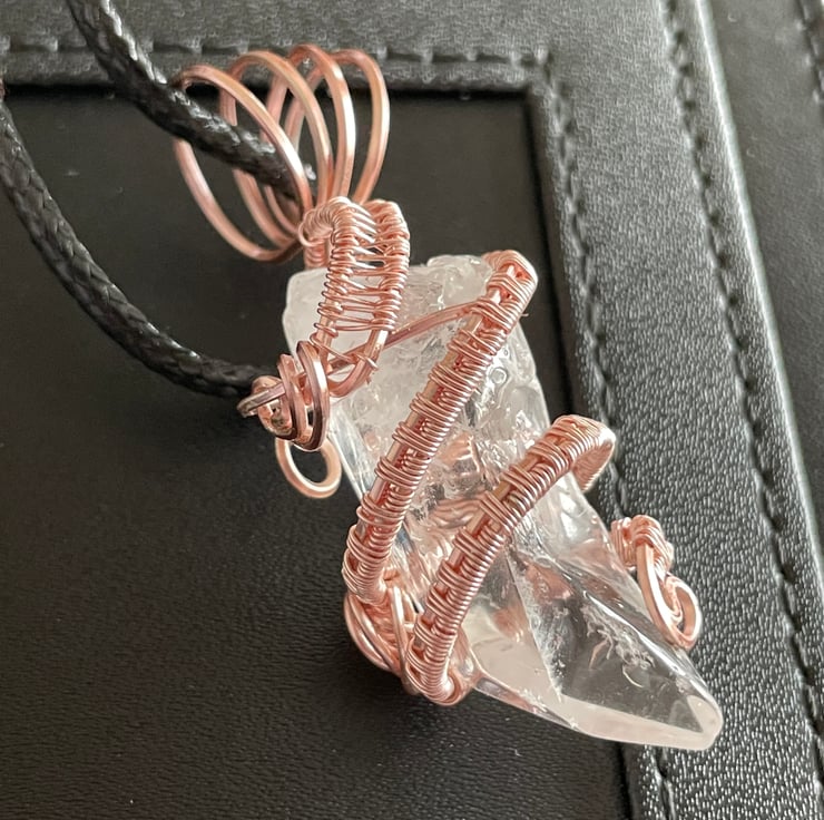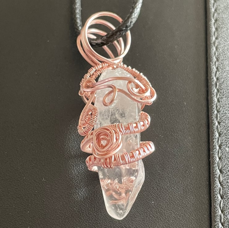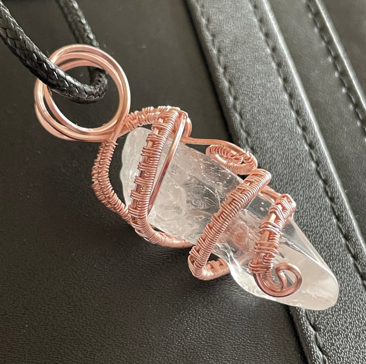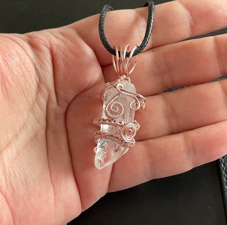 Measuring 6cm this crystal shard pendant is unique and one of a kind. Paired with a black waxed cord