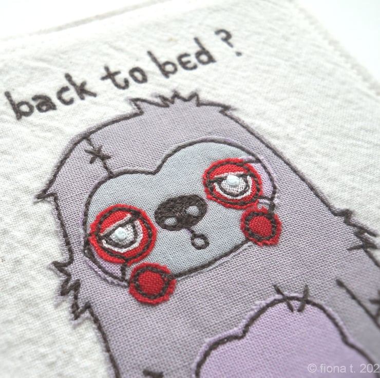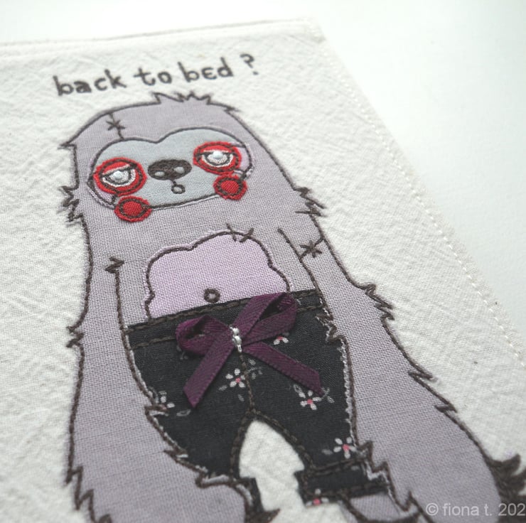 back to bed? this sleepy little zombie sloth, in floral pyjamas, is staying in bed indefinitely.