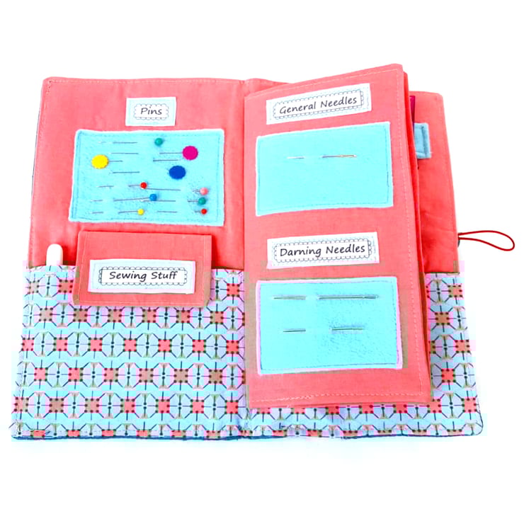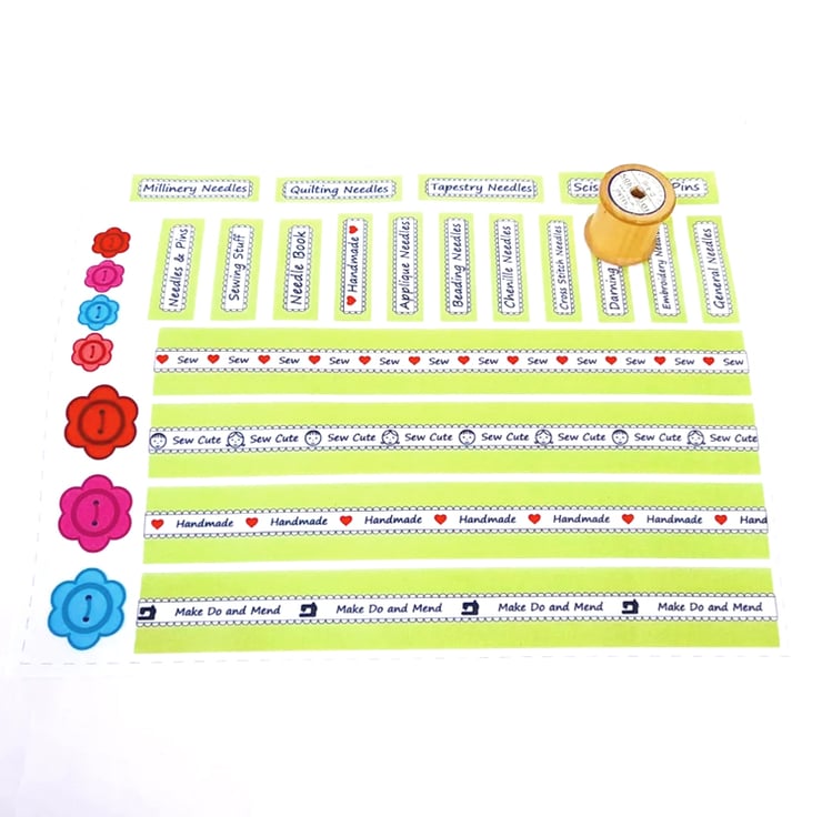 The Texty fabric applique panel has been designed to use in conjuction with our Texty Needle Book sewing pattern or any notions pouch / needle book type project. It includes 4 pieces of sewing themed text fabric ribbon and 16 labels,10 of which are different needle label types so would be of particular use to those who would like to organise their hand sewing needles (see needle book in images 2 - 5)