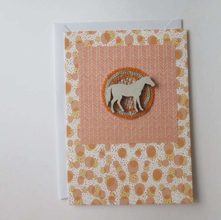 A pretty hand crafted blank greetings card, featuring a horse.