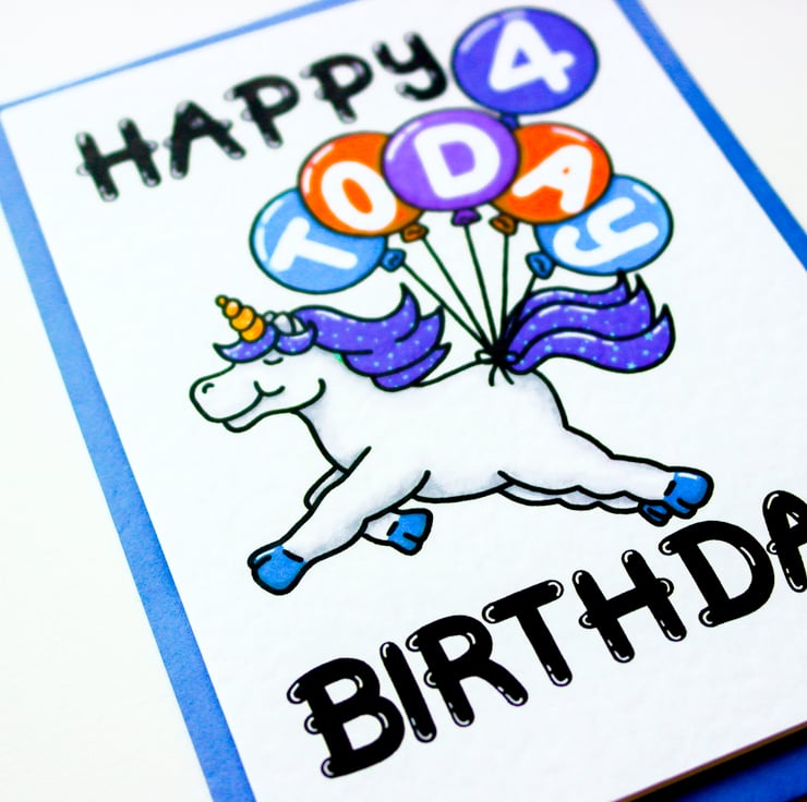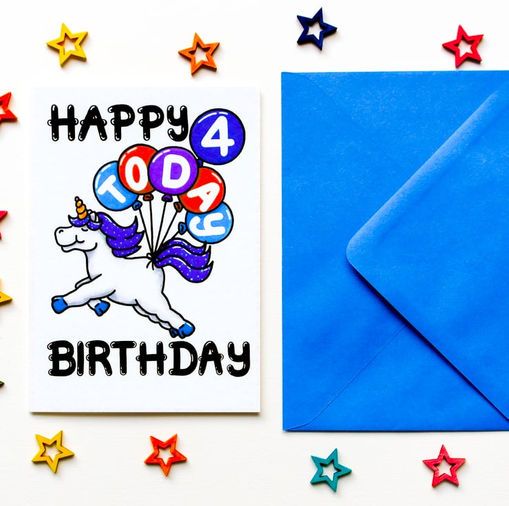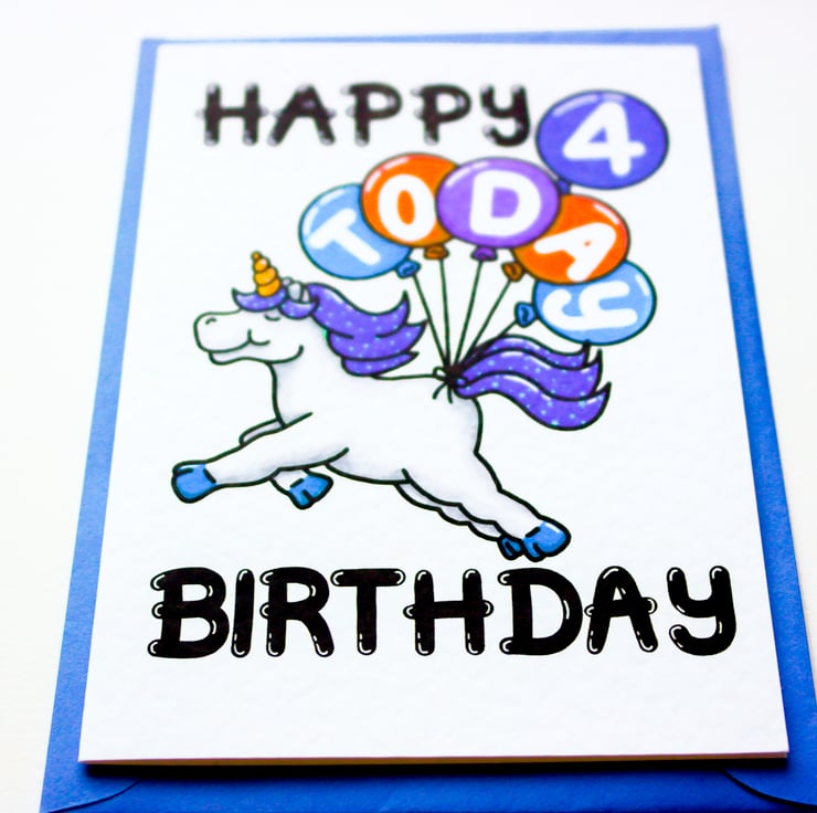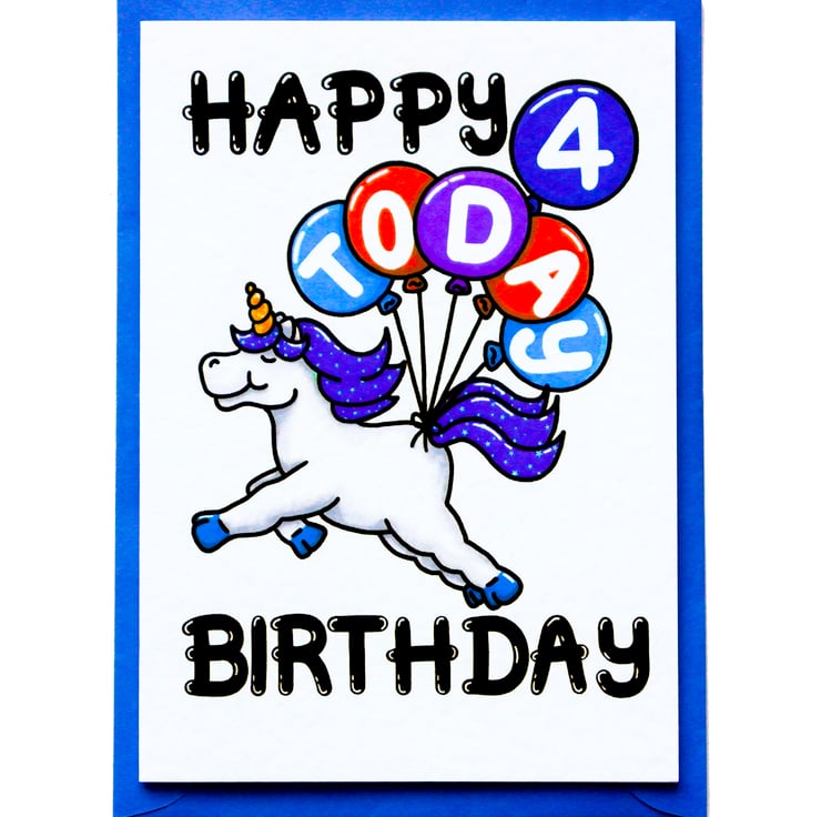 Greeting on front: HAPPY BIRTHDAY 4 TODAY (On Balloons)