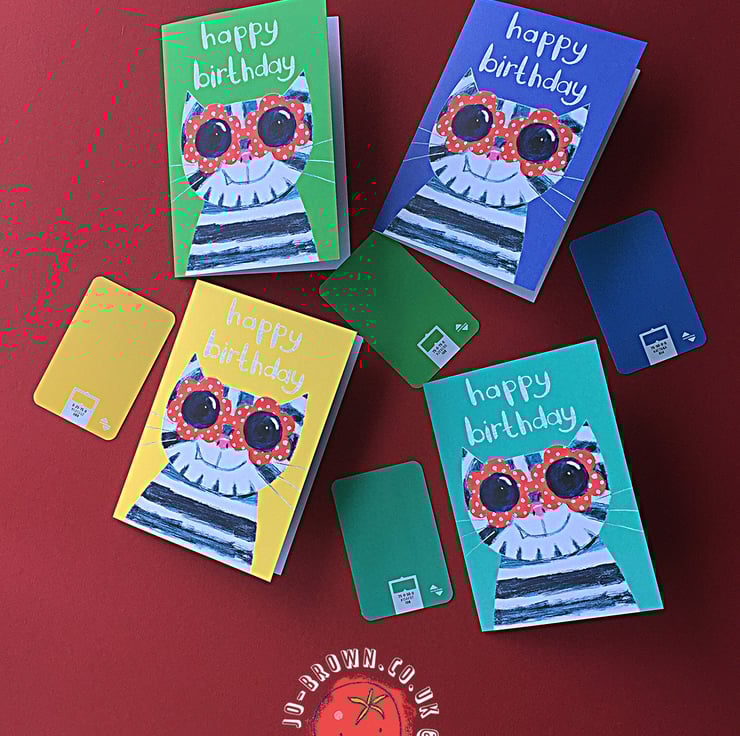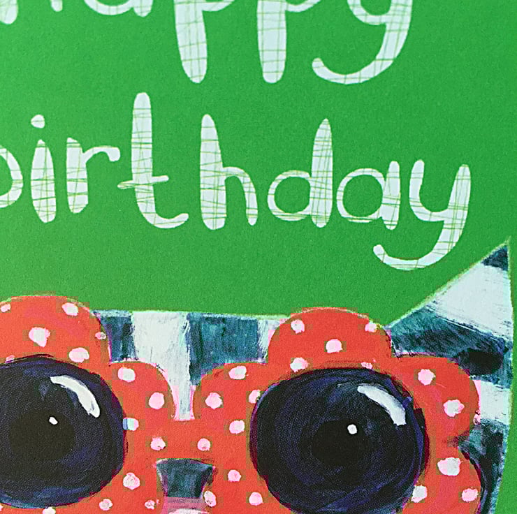 Happy Birthday Sunglasses Cat card - Green- by Jo Brown