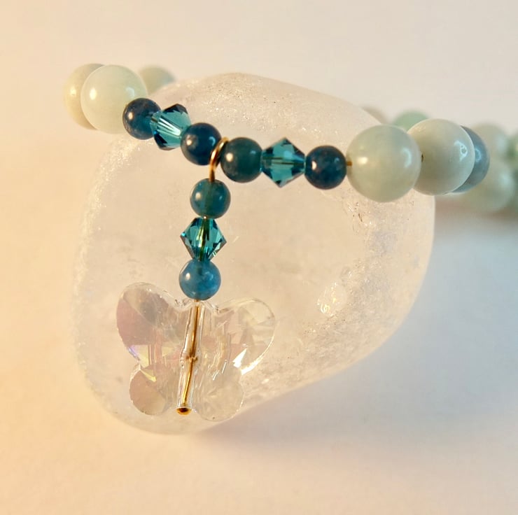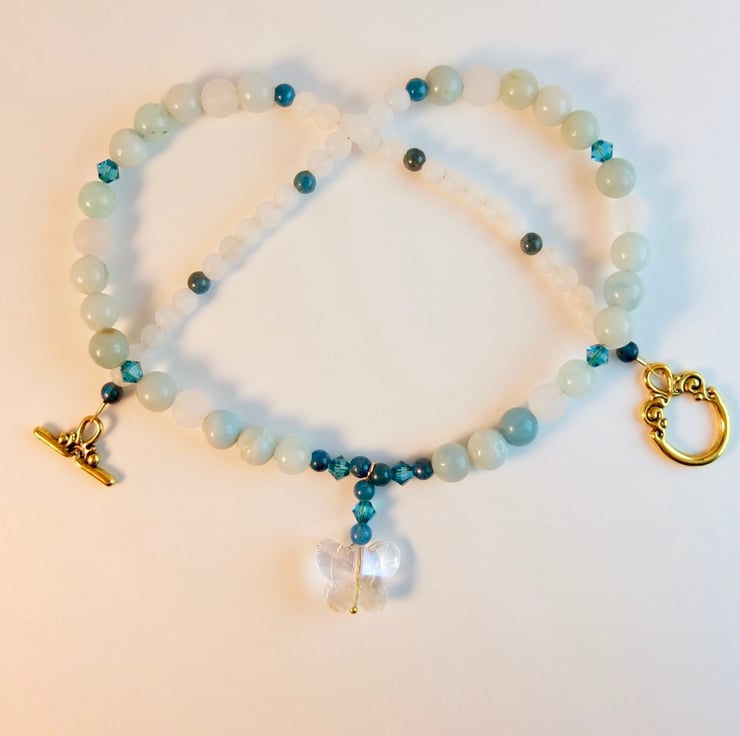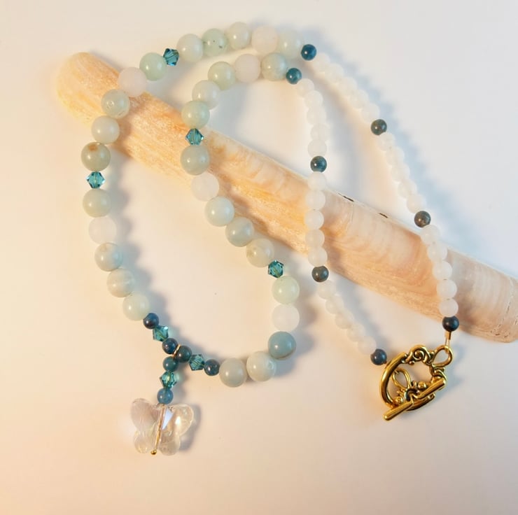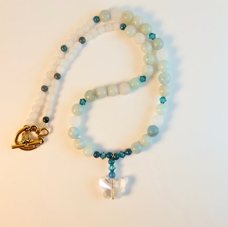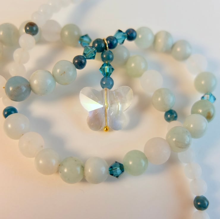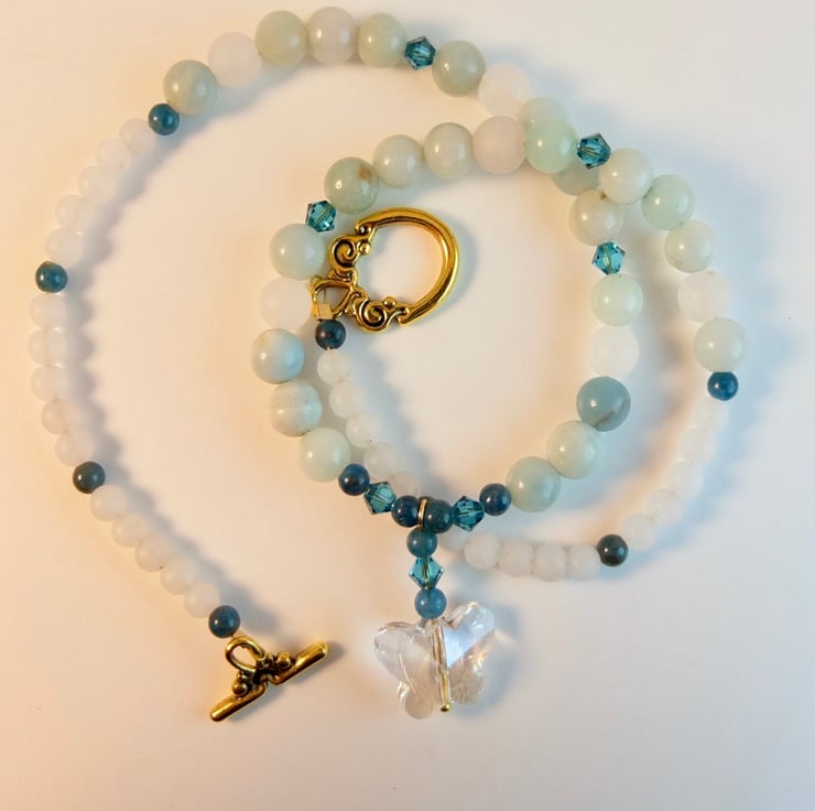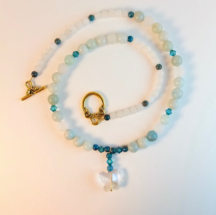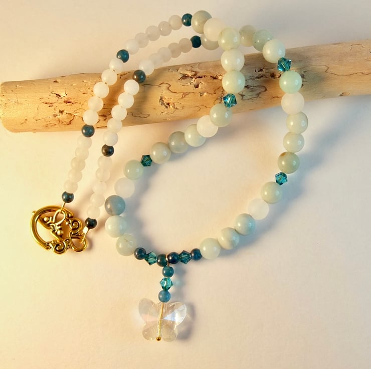 Glass Butterfly Pendant With Amazonite, Jade, Apatite and Swarovski Crystals