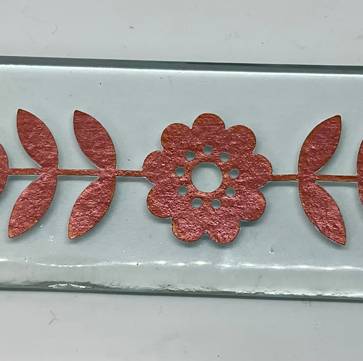 This is a beautiful handmade clear decorative retro flower hanging. It is handmade using clear glass, with a gold and rose gold simple flower design. This would make an ideal gift to brighten anyone’s day.