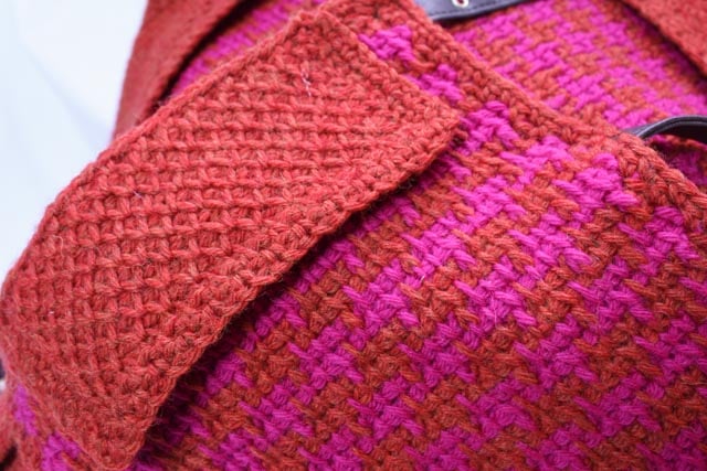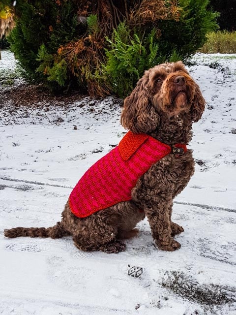 Wrap your pooch in love, with this stylish Houndstooth design in Red and Pink, featuring a lovely collar. Each medium and small dog coat is handmade using Tunisian Crochet to make sure its denser, warmer, suitable for everyday wear.