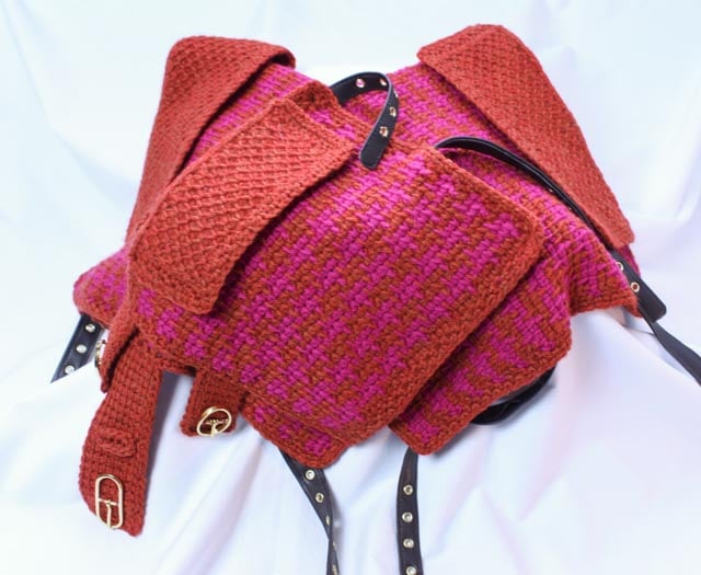 I was drawn to experimenting with Tunisian Crochet, which is a lesser-known technique, more a cross between knitting and crochet, as each row is worked in a forward and a return pass, producing a denser fabric with a unique drape. This technique has been known by many other names, and no one is certain where it came from.