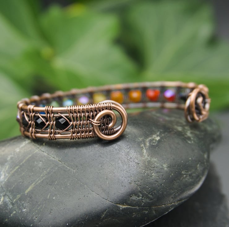 Rainbow Snake Wire Weave Copper Cuff with Faceted Glass Beads - as per listing https://folksy.com/items/7317659