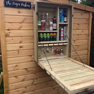 A Rustic, space saving foldaway wall bar will add a touch of class & style to any garden or home.