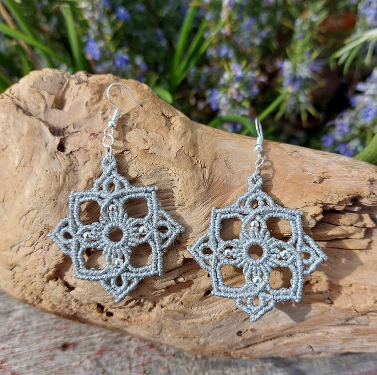 Handmade macrame geometry earrings.